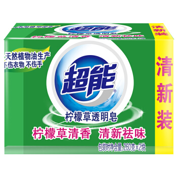 超能 柠檬草透明皂/洗衣皂(清新祛味)260g*2块 肥皂 不伤手天然植物成分去异味 硬水适用