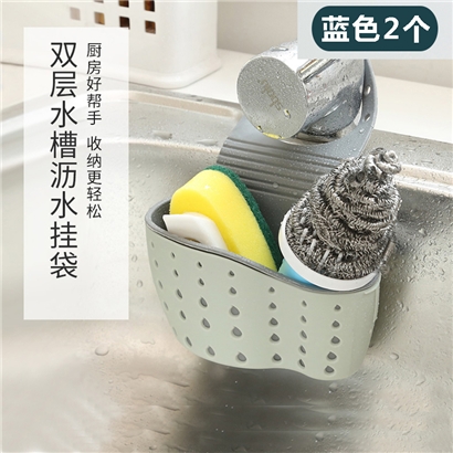 双层水槽挂袋2个【TPR橡胶/蓝色】