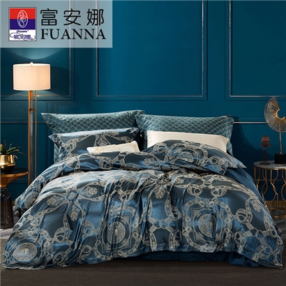 墨尔本晴 床单四件套(被套1件床单1件枕套2件)(适合1.8米床)【A版:涤莫代尔提花;B版:纯棉/绿】