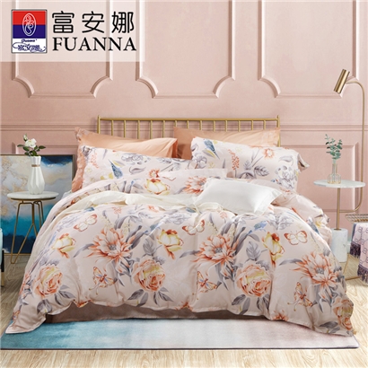 蝶梦花溪 床单四件套(被套1件床单1件枕套2件)(适合1.8米床)【纯棉/橙色】