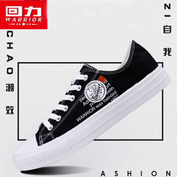 回力男鞋帆布鞋男2020春季新款时尚韩版板鞋潮流低帮系带休闲鞋学生运动鞋 黑色 42
