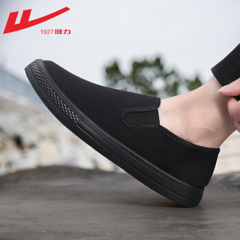 回力 男鞋 纯色帆布鞋 套鞋舒适驾车鞋 一脚蹬 复古甲板鞋 懒人鞋 6249全黑 41