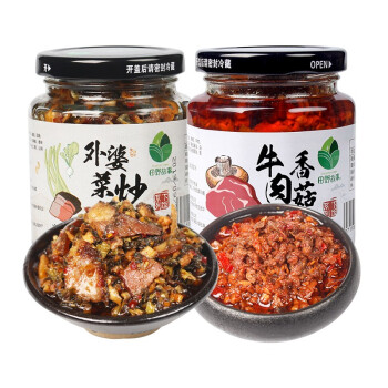 [田野故事]湖南特产外婆菜炒腊肉农家开胃咸菜拌饭酱玻璃瓶装加肉香辣湘西下饭菜210g 外婆菜炒腊肉210g/瓶+香菇牛肉酱258g/瓶