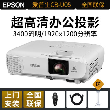 爱普生(EPSON)投影仪 高清家用 办公便携投影机 CB-U05(3400流明 超高清) 标配+吊架+英微100英寸幕布+安装